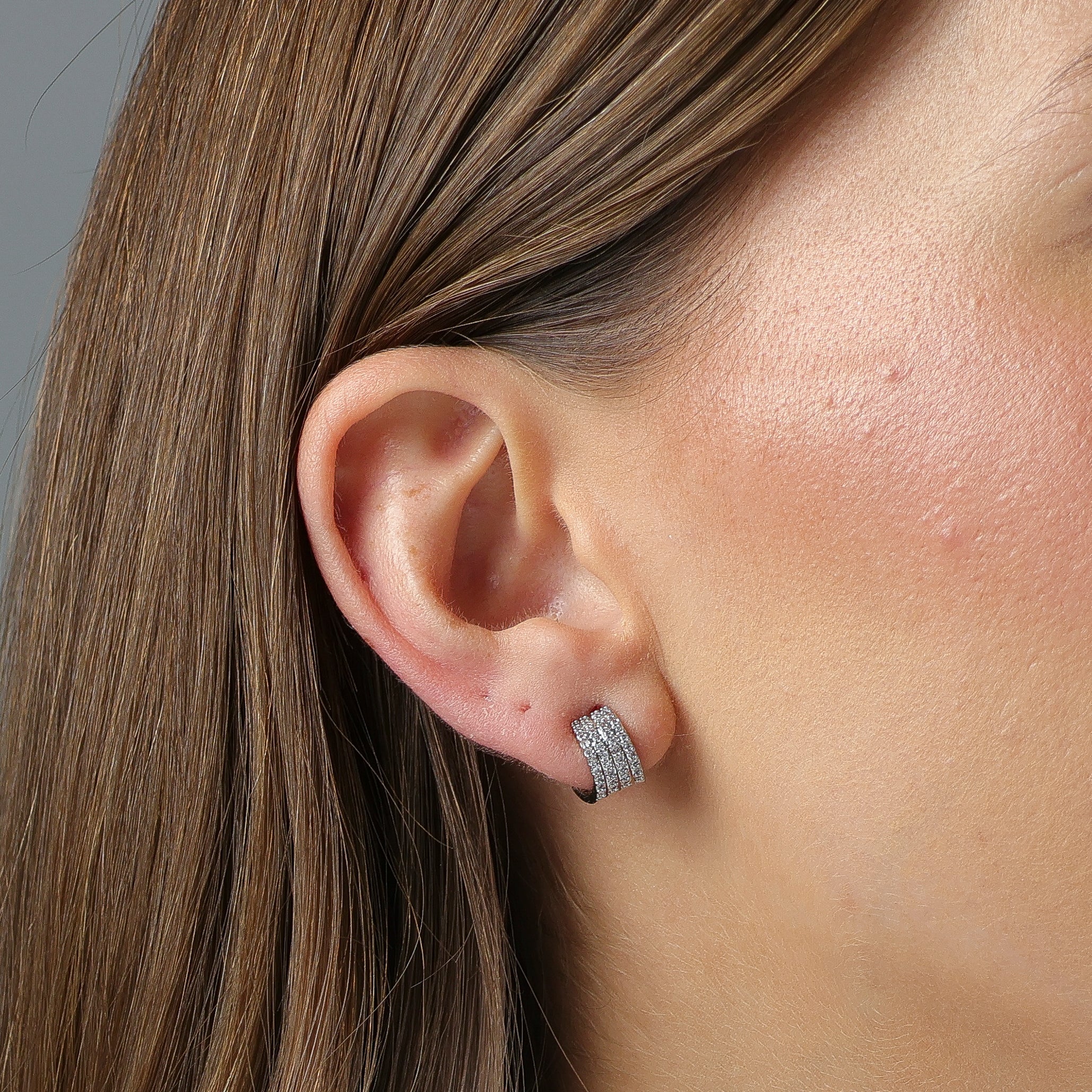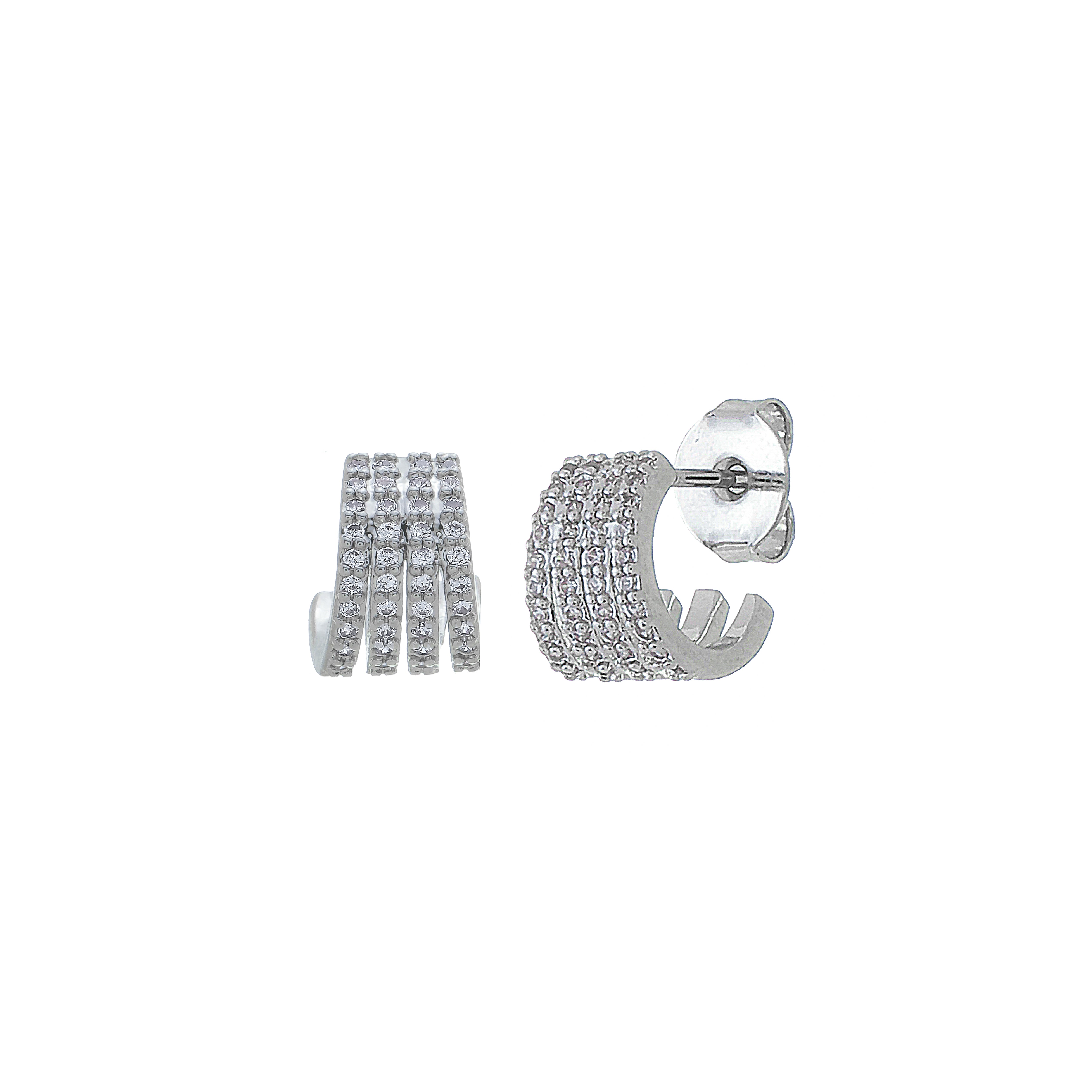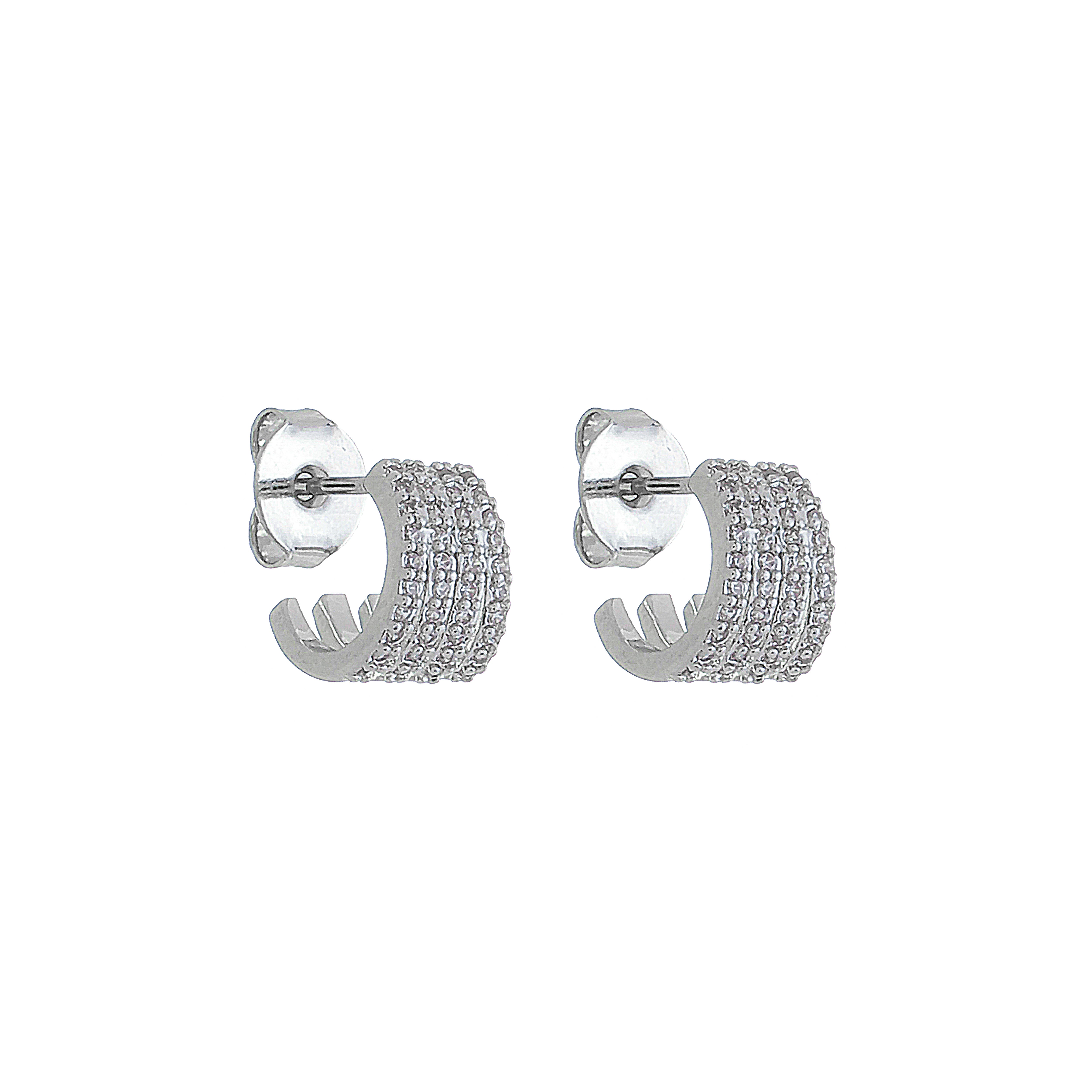O brinco Kate combina sofisticação e brilho em um design elegante de meia argola. Com fileiras de zircônias cravejadas, ele traz um visual glamouroso na medida certa — perfeito para iluminar produções do dia a dia ou compor looks mais elaborados com charme e delicadeza.
