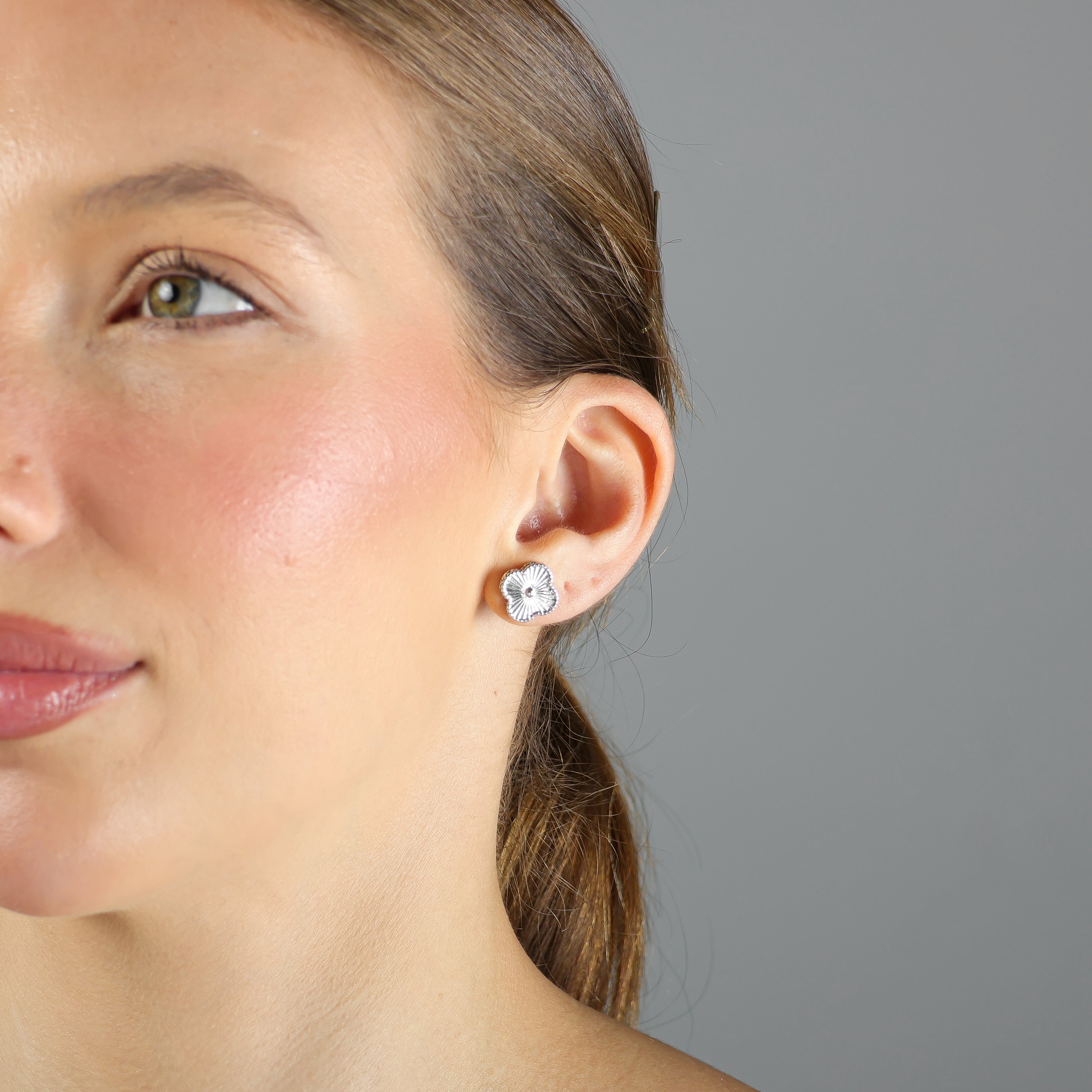 Inspirado no icônico símbolo do trevo de quatro folhas, este brinco é uma releitura icônica de grandes nomes da alta joalheria. Com textura radial e acabamento polido, revela um brilho sofisticado — perfeito para iluminar o visual com toque de exclusividade.