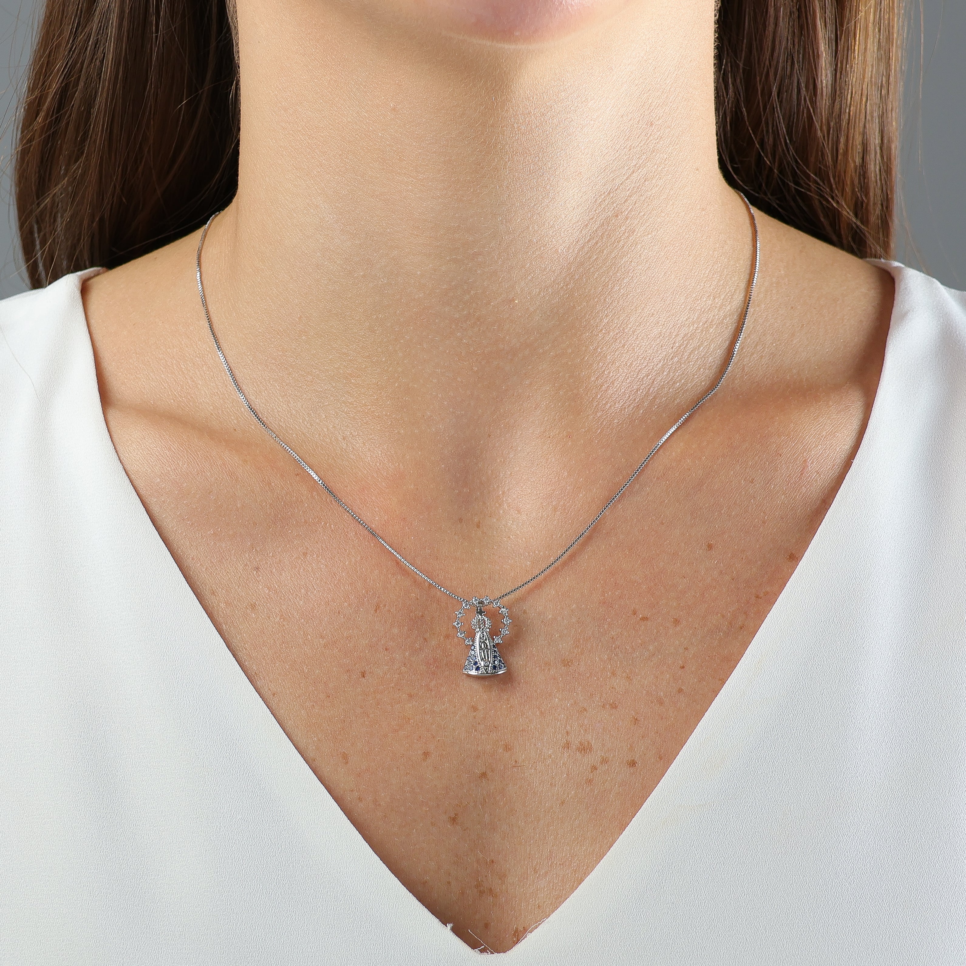 • Colar com pingente de Nossa Senhora Aparecida e coroa de estrelas;