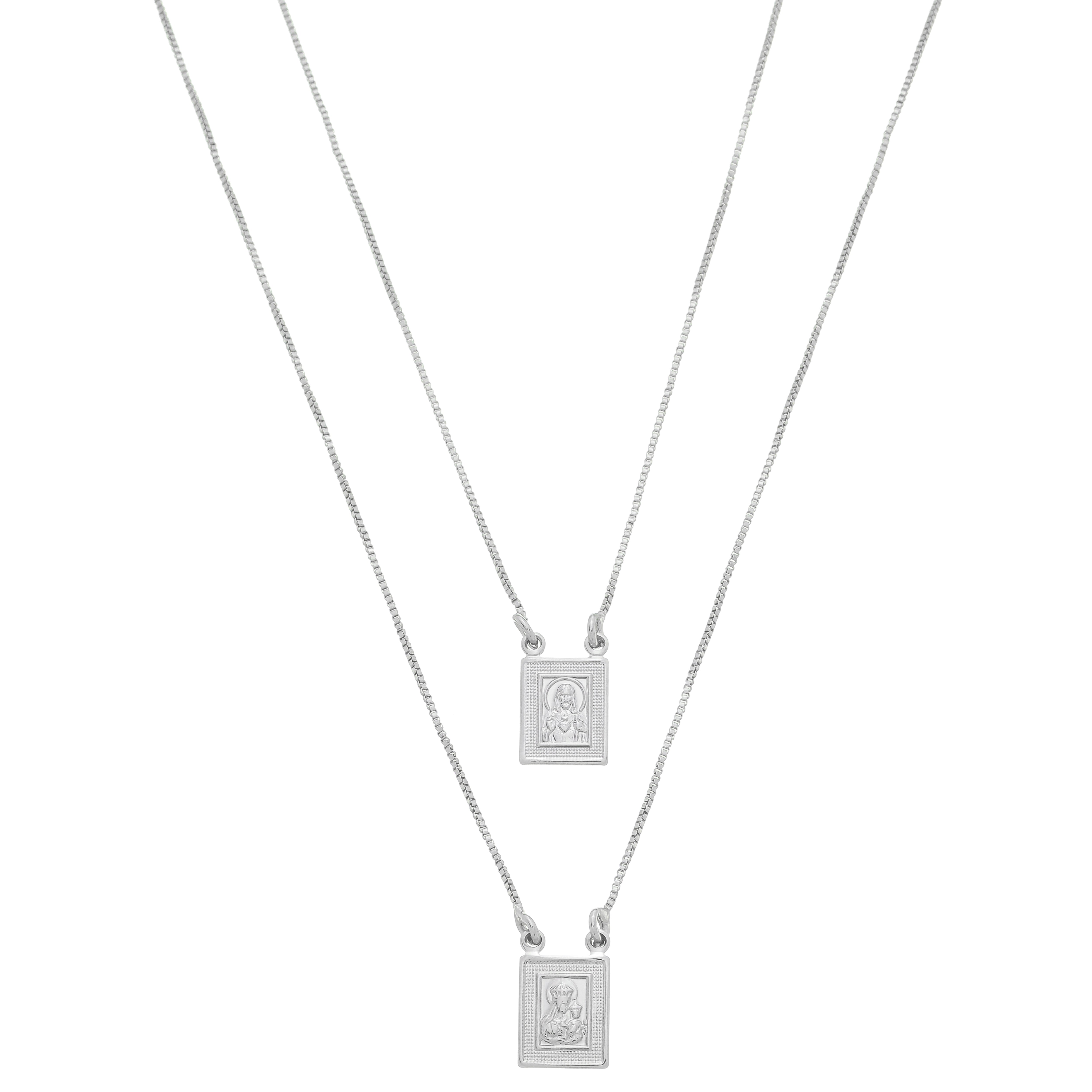 Um clássico da joalheria religiosa, o escapulário do Sagrado Coração de Jesus representa fé, proteção e conexão espiritual. Nesta versão inteiramente em banho branco, o brilho uniforme destaca os detalhes das medalhas, unindo tradição e elegância em uma peça para usar todos os dias.
