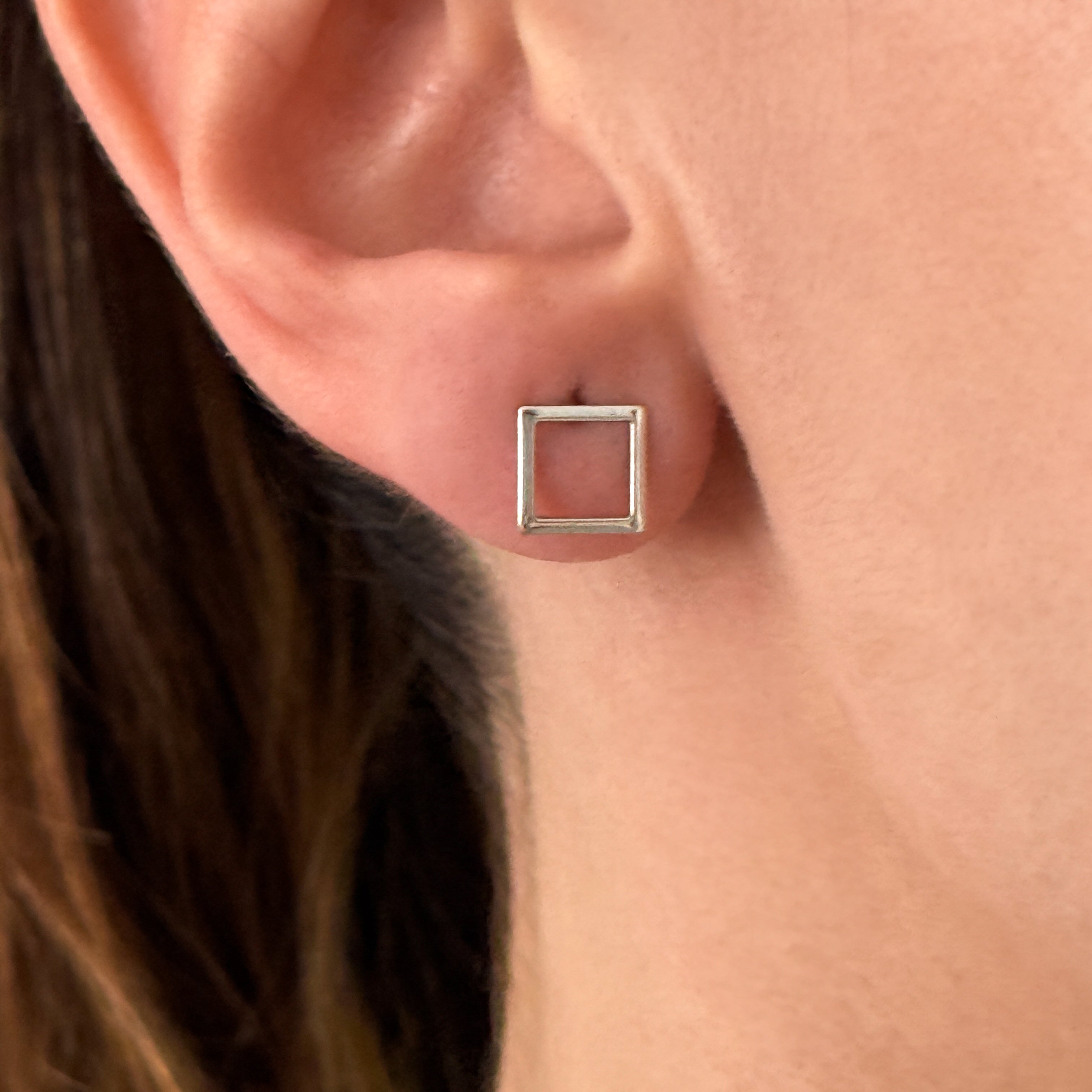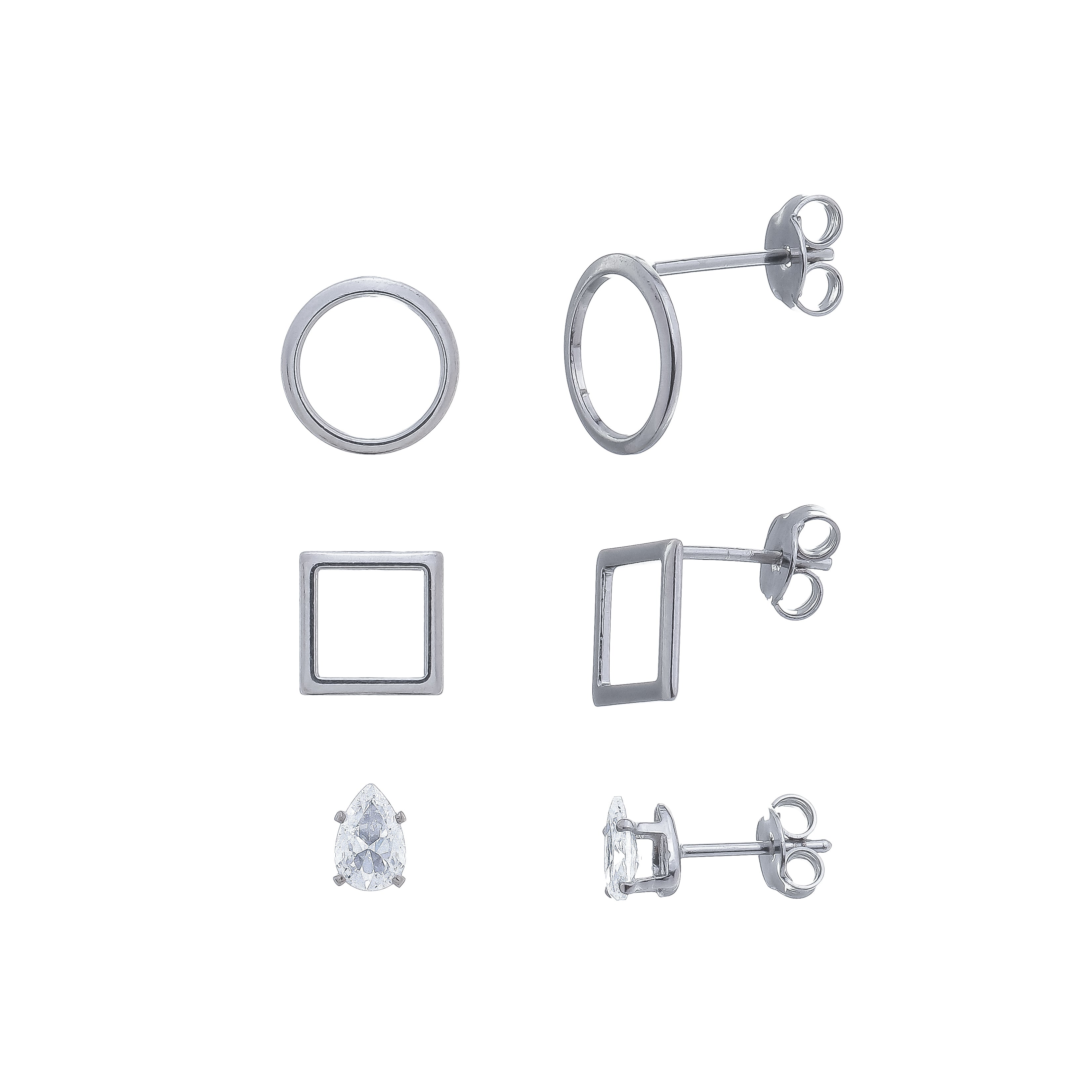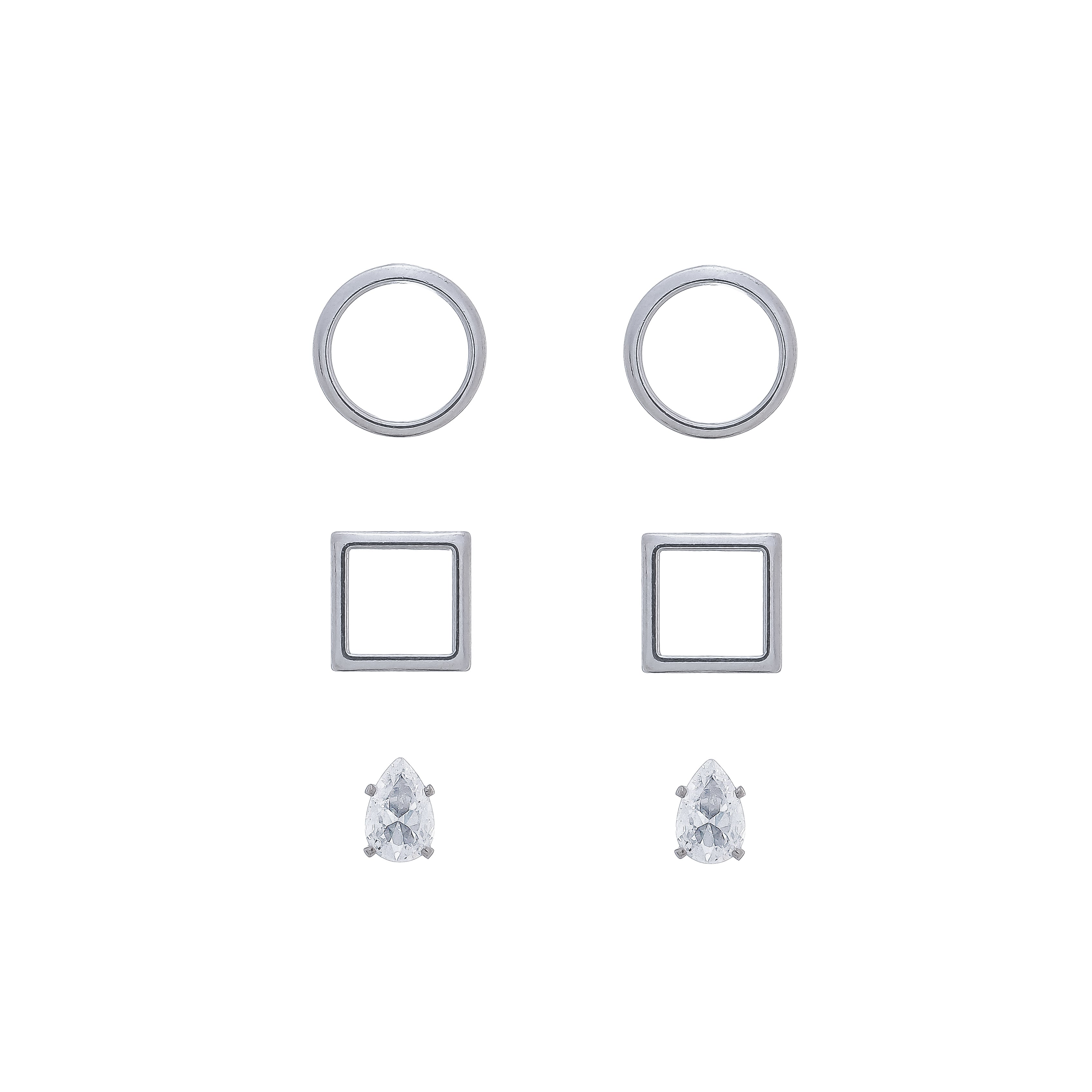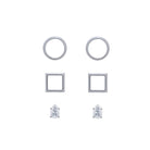 • Conjunto de brinco pequeno vazado redondo, brinco pequeno vazado quadrado e brinco ponto de luz em formato de gota;