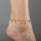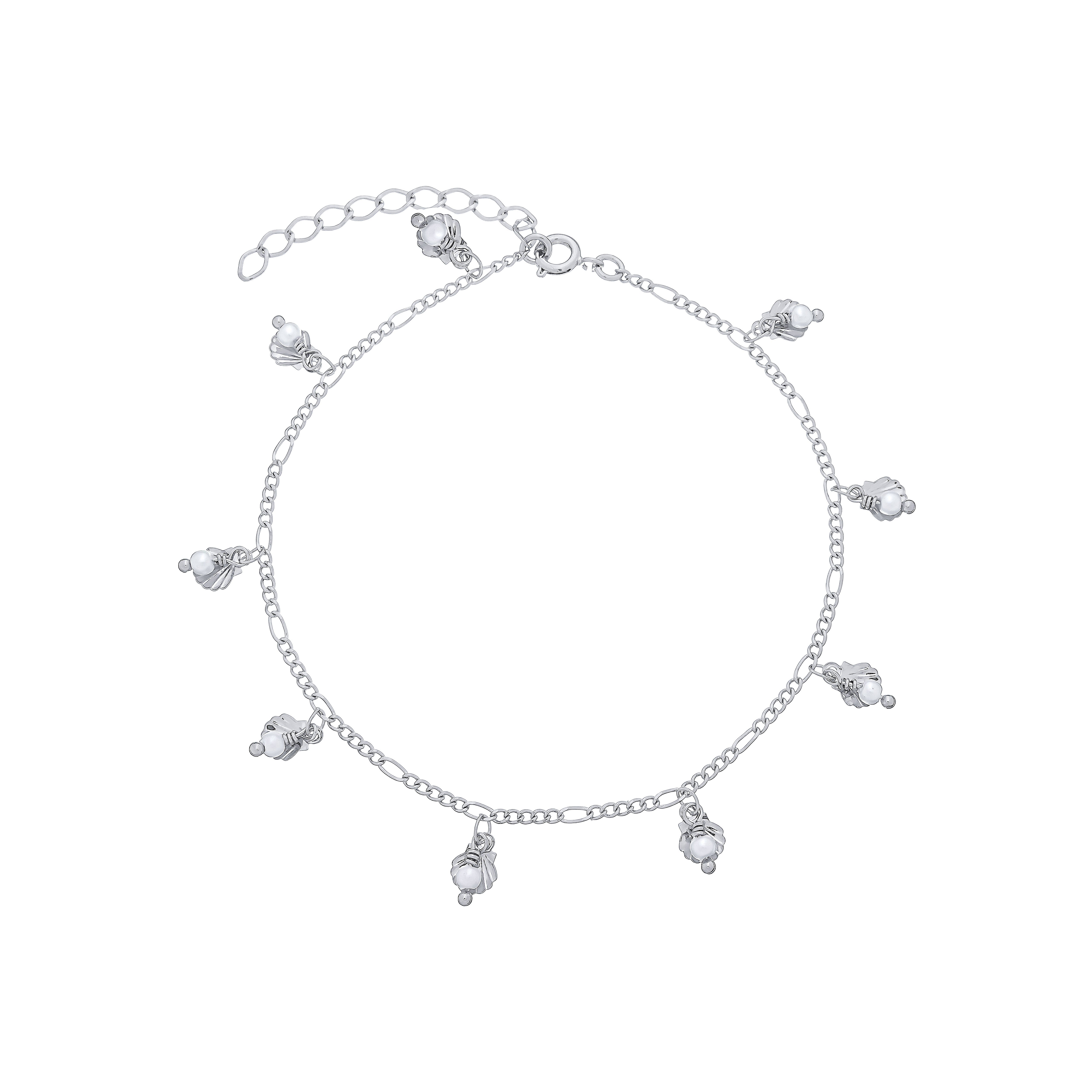 • Tornozeleira com pingentes de mini conchas e pequenas pérolas;
