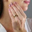 O anel Clara combina curvas orgânicas para criar um visual moderno e impactante. Seu design ajustável proporciona conforto e flexibilidade, enquanto a superfície levemente encurvada reforça a elegância da peça. Um item essencial para quem aposta em acessórios marcantes, mas cheios de leveza.
