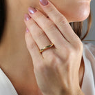 O anel Clarissa combina design marcante com leveza, criando o equilíbrio perfeito entre presença e sofisticação. Seu formato regulável proporciona conforto e múltiplas possibilidades de composições. Uma peça versátil, que transita com facilidade do look básico ao mais elaborado — perfeita para quem busca estilo com personalidade.