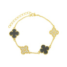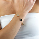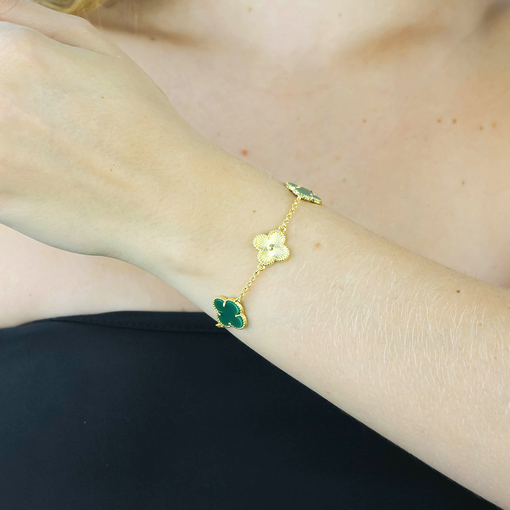 Marcante e sofisticada, esta pulseira é uma releitura do icônico modelo que combina delicados trevos pretos ou verdes e trevos cravejados com micro zircônias brilhantes. Este modelo celebra o trevo de quatro folhas como símbolo de sorte, amor, saúde e riqueza, trazendo um toque de glamour atemporal para elevar suas composições.