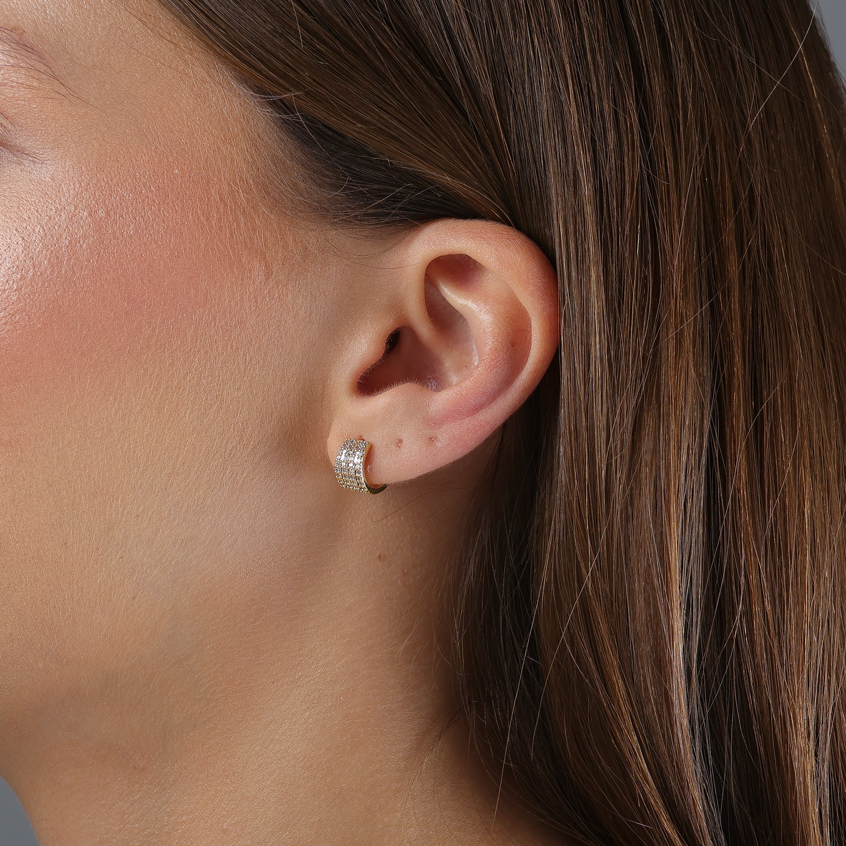 O brinco Kate combina sofisticação e brilho em um design elegante de meia argola. Com fileiras de zircônias cravejadas, ele traz um visual glamouroso na medida certa — perfeito para iluminar produções do dia a dia ou compor looks mais elaborados com charme e delicadeza.