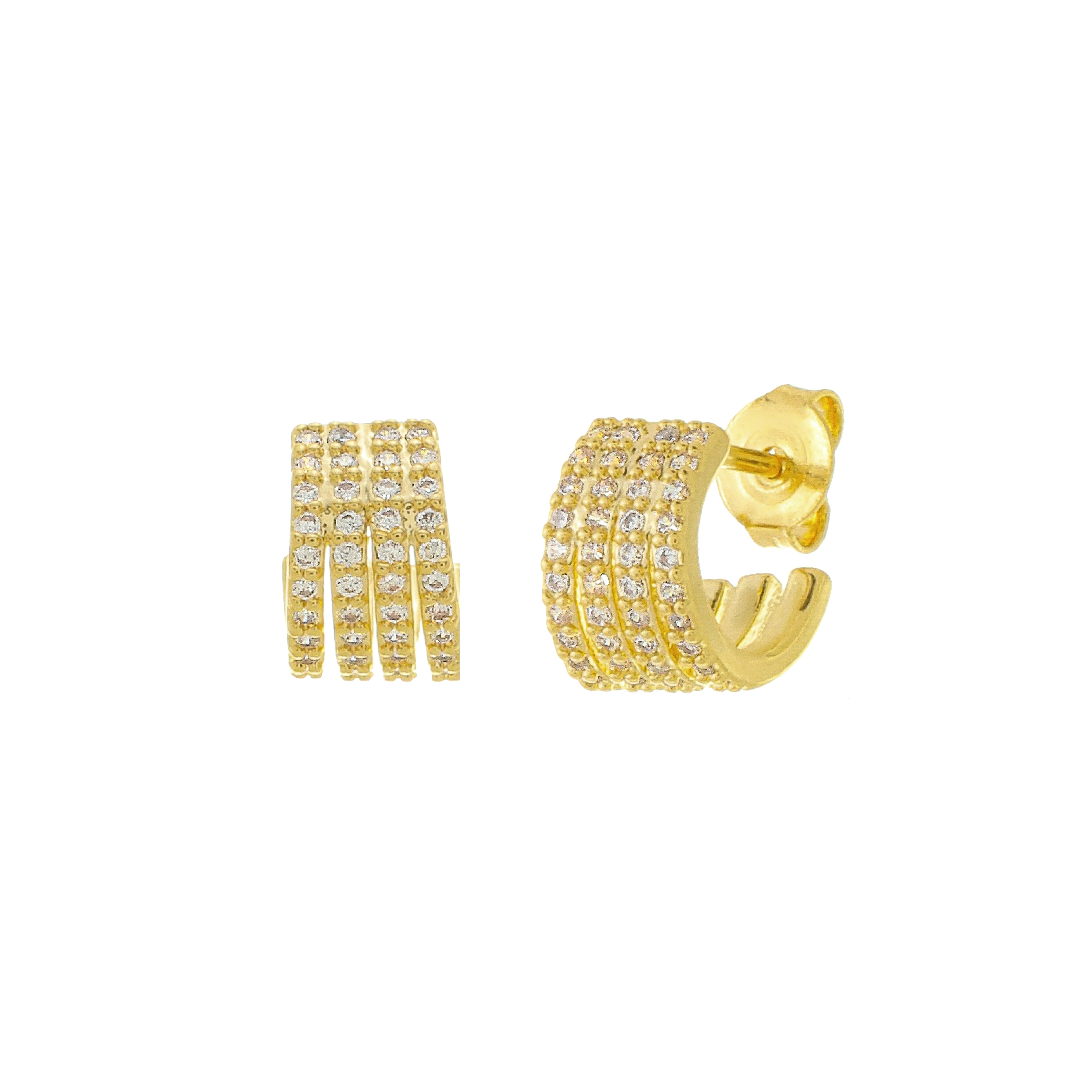 - Brinco meia argola com cravação pavê de zircônias;