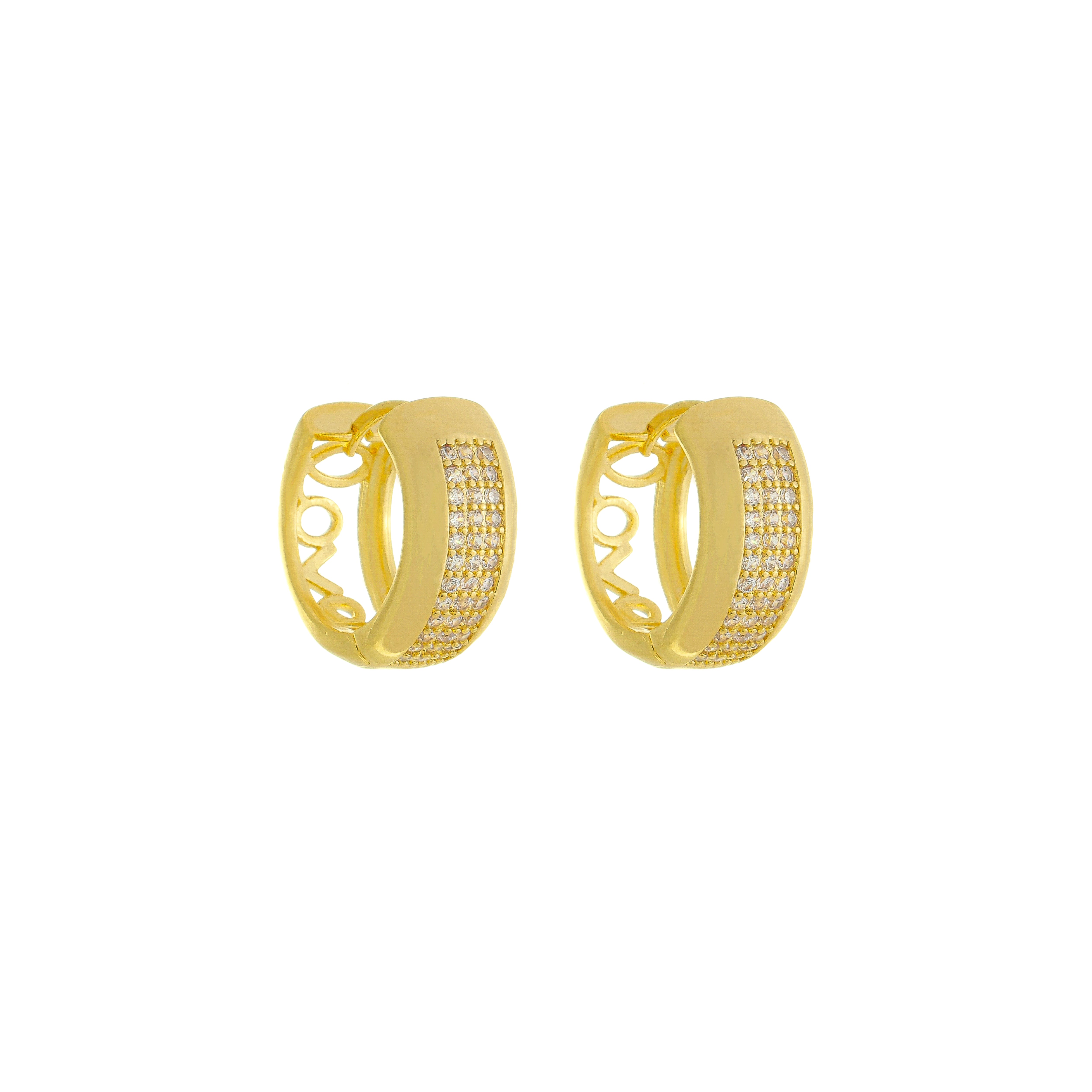 Com design marcante e toque romântico, o brinco Lorena traz o brilho das zircônias em contraste com o escrito vazado Love na parte interna. Seu formato de argola estruturada garante presença sem perder a leveza — perfeito para compor looks elegantes com uma mensagem discreta e especial.