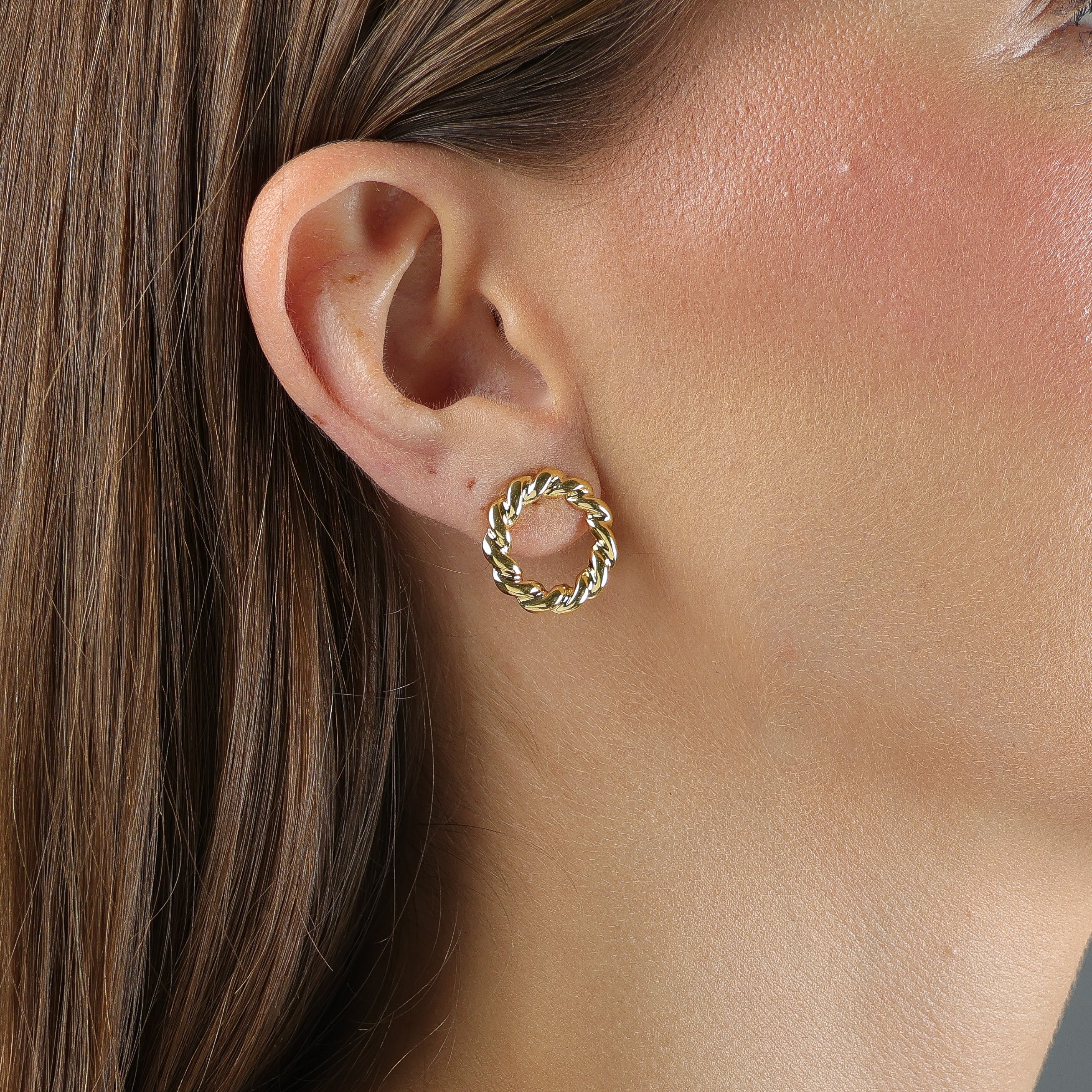 Elegante e moderno, o brinco Solaris aposta em um design de aro torcido que combina textura e brilho na medida certa. Seu formato circular e acabamento polido garantem um visual elegante e atual — perfeito para dar um toque de personalidade às suas composições do dia a dia.