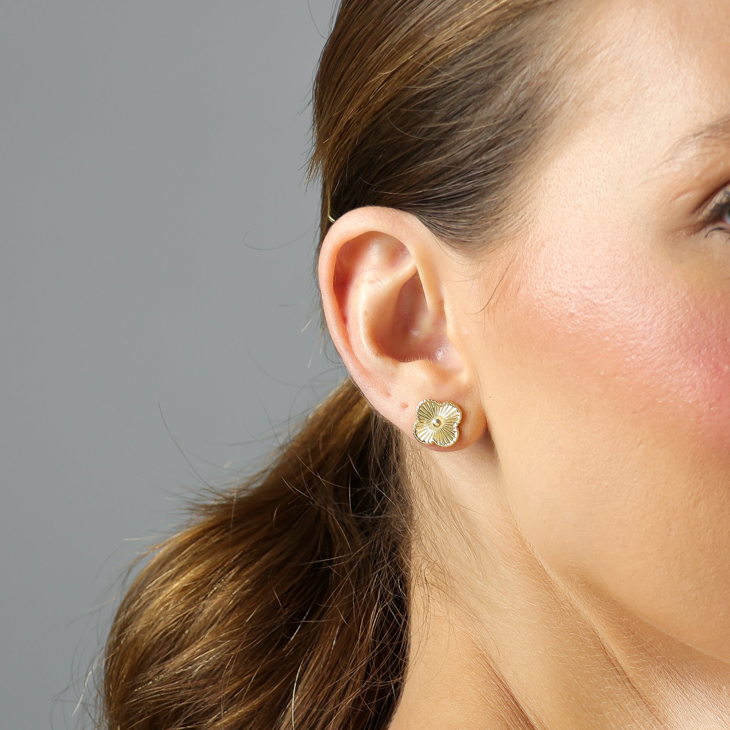 Inspirado no icônico símbolo do trevo de quatro folhas, este brinco é uma releitura icônica de grandes nomes da alta joalheria. Com textura radial e acabamento polido, revela um brilho sofisticado — perfeito para iluminar o visual com toque de exclusividade.