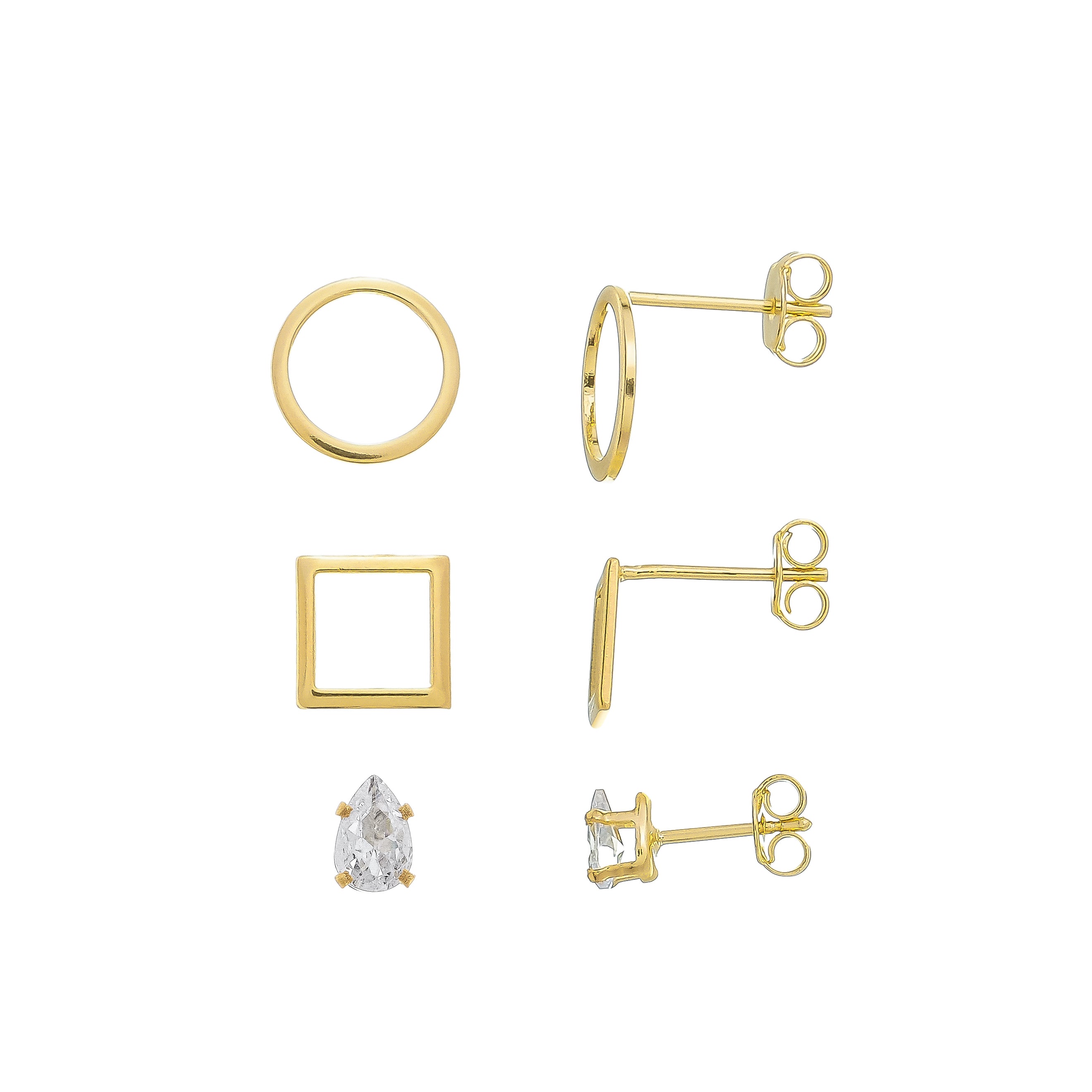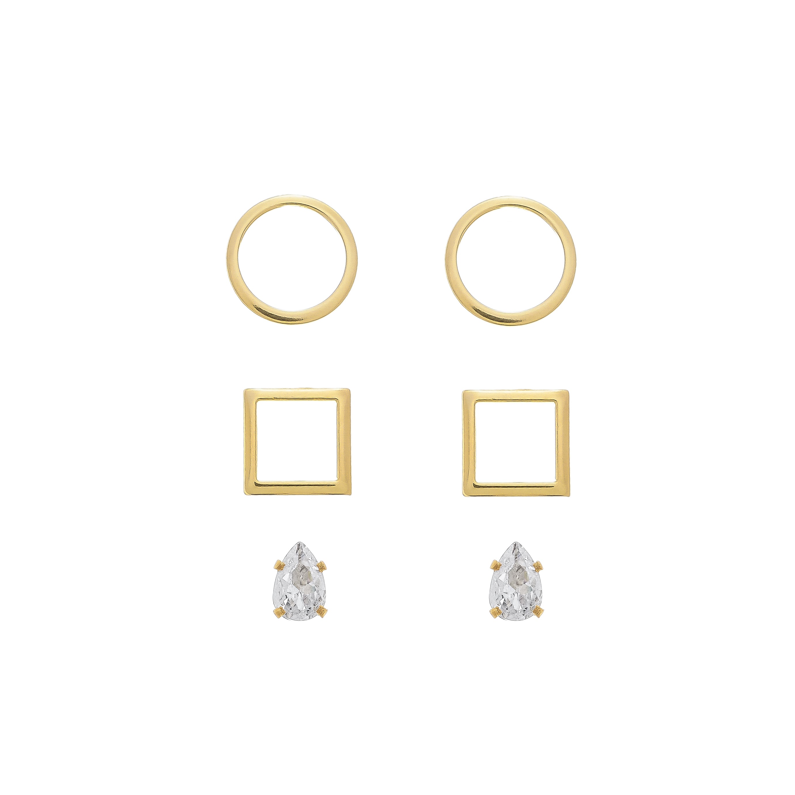 - Conjunto de brinco pequeno vazado redondo, brinco pequeno vazado quadrado e brinco ponto de luz em formato de gota;