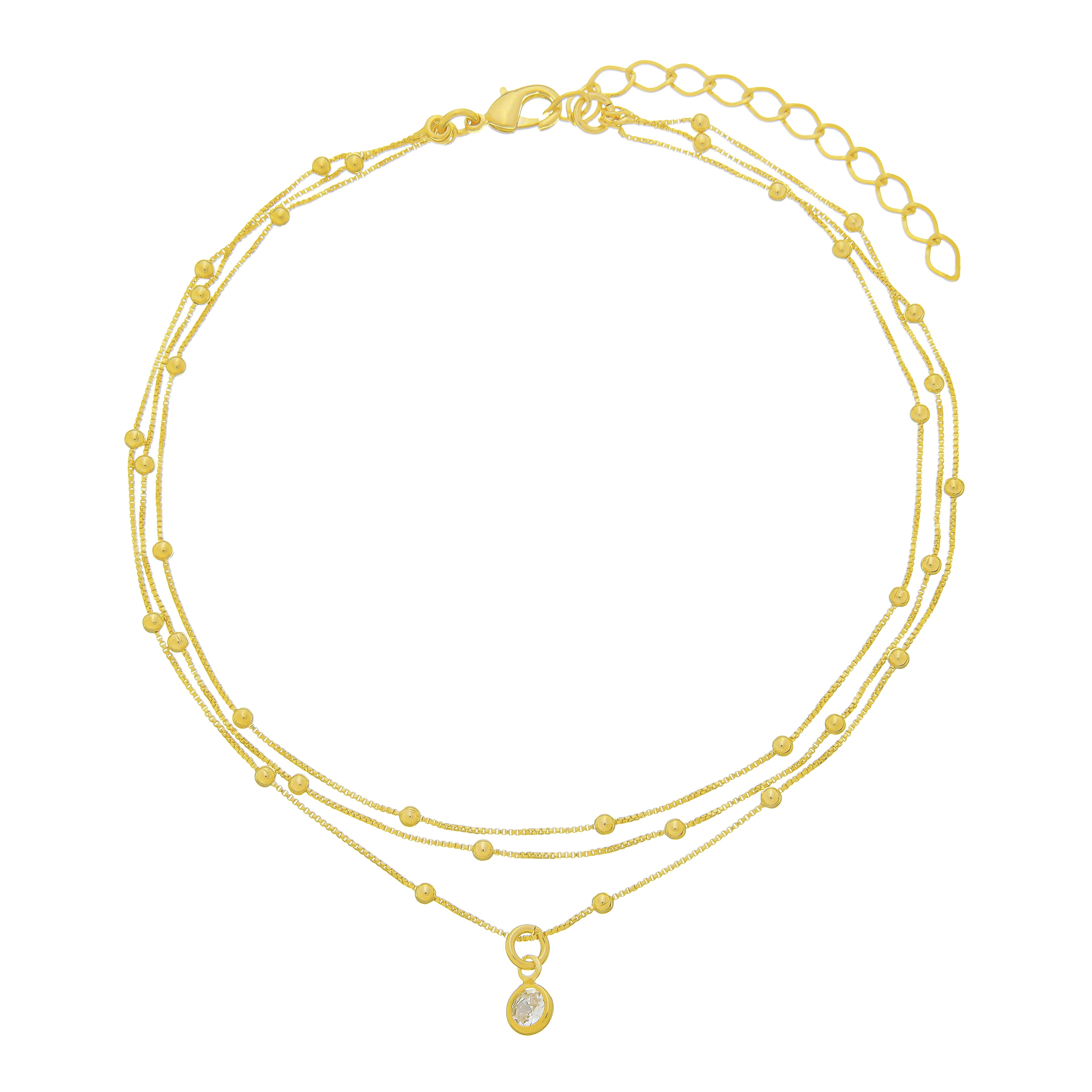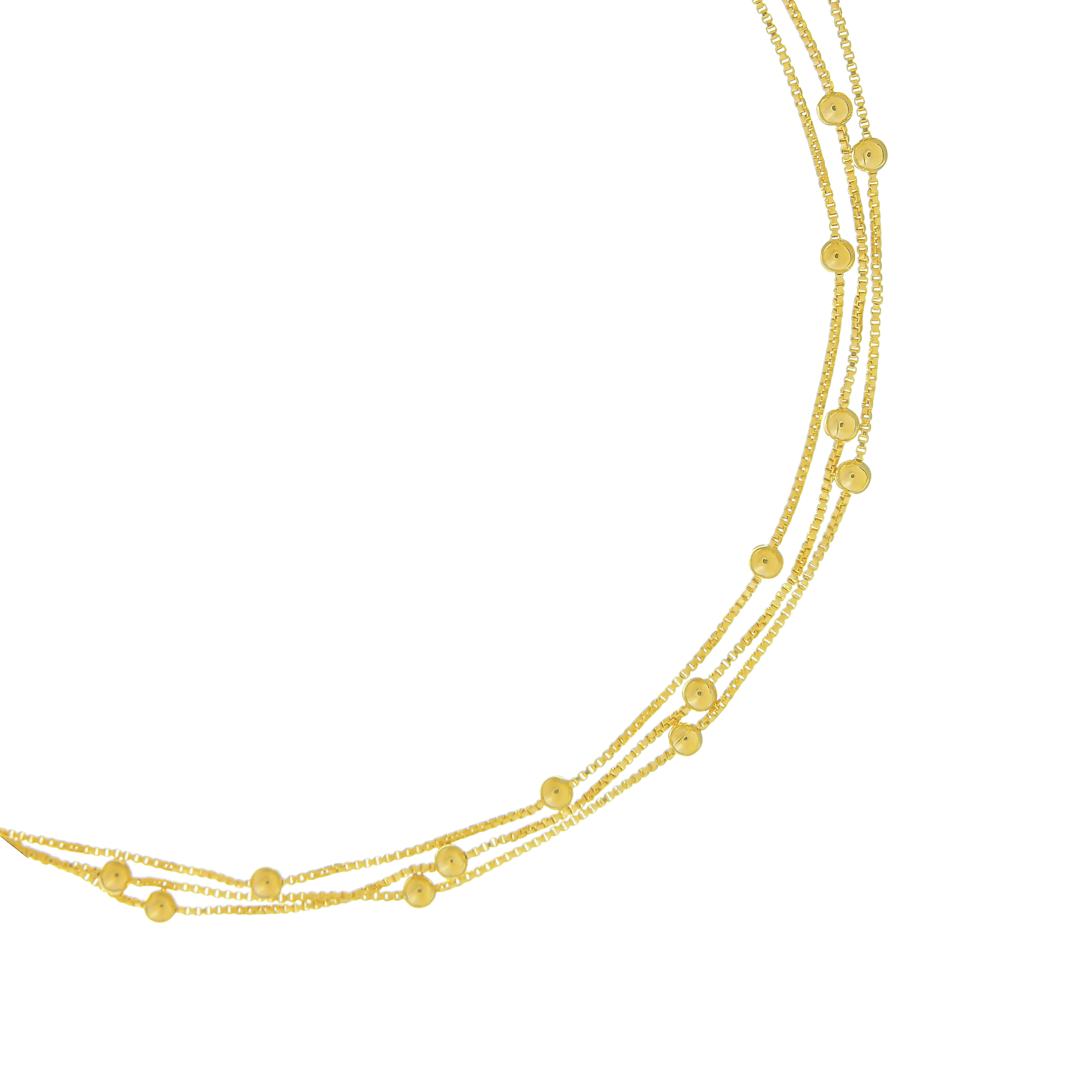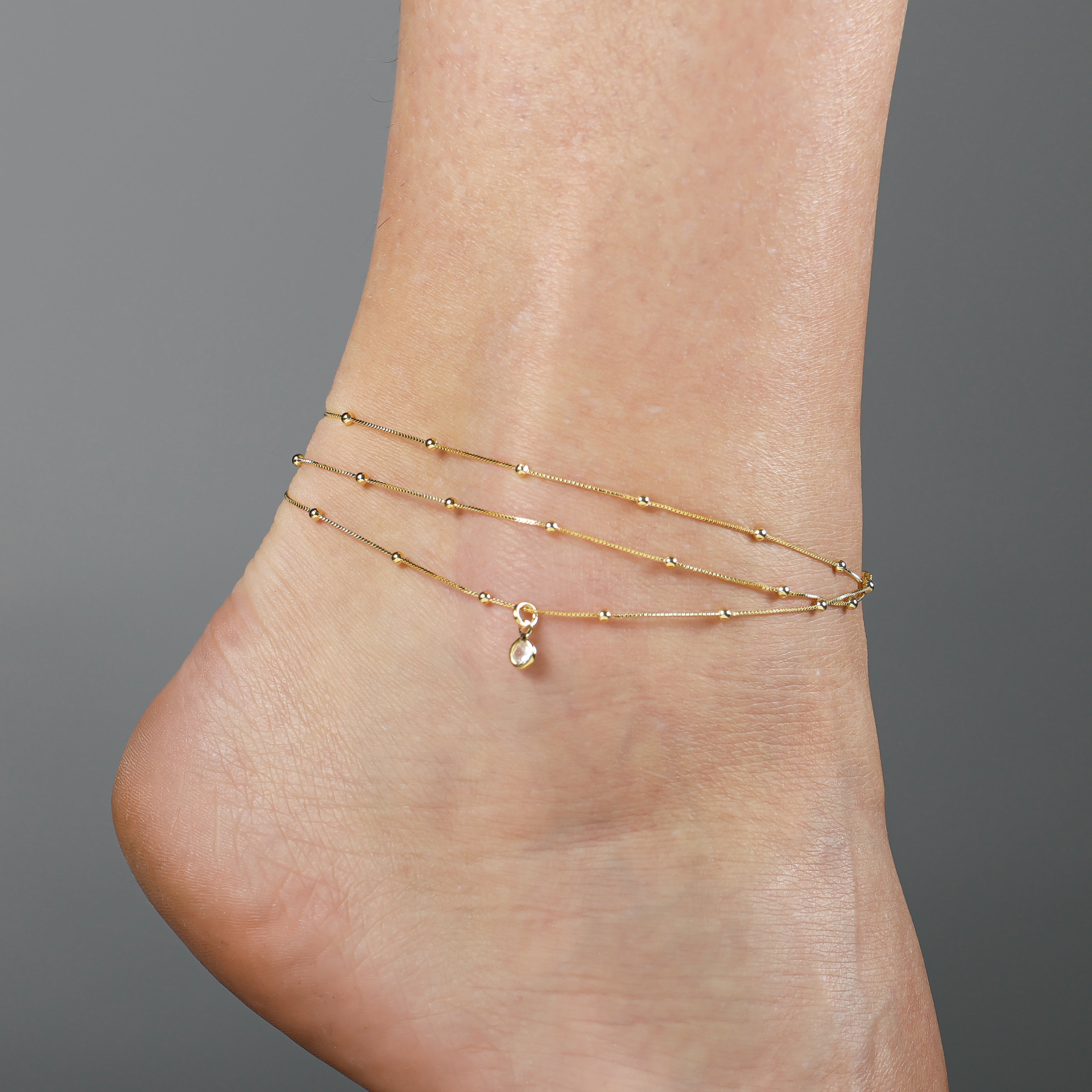 - Tornozeleira tripla com correntes finas e bolinhas lisas;