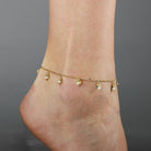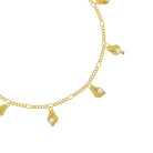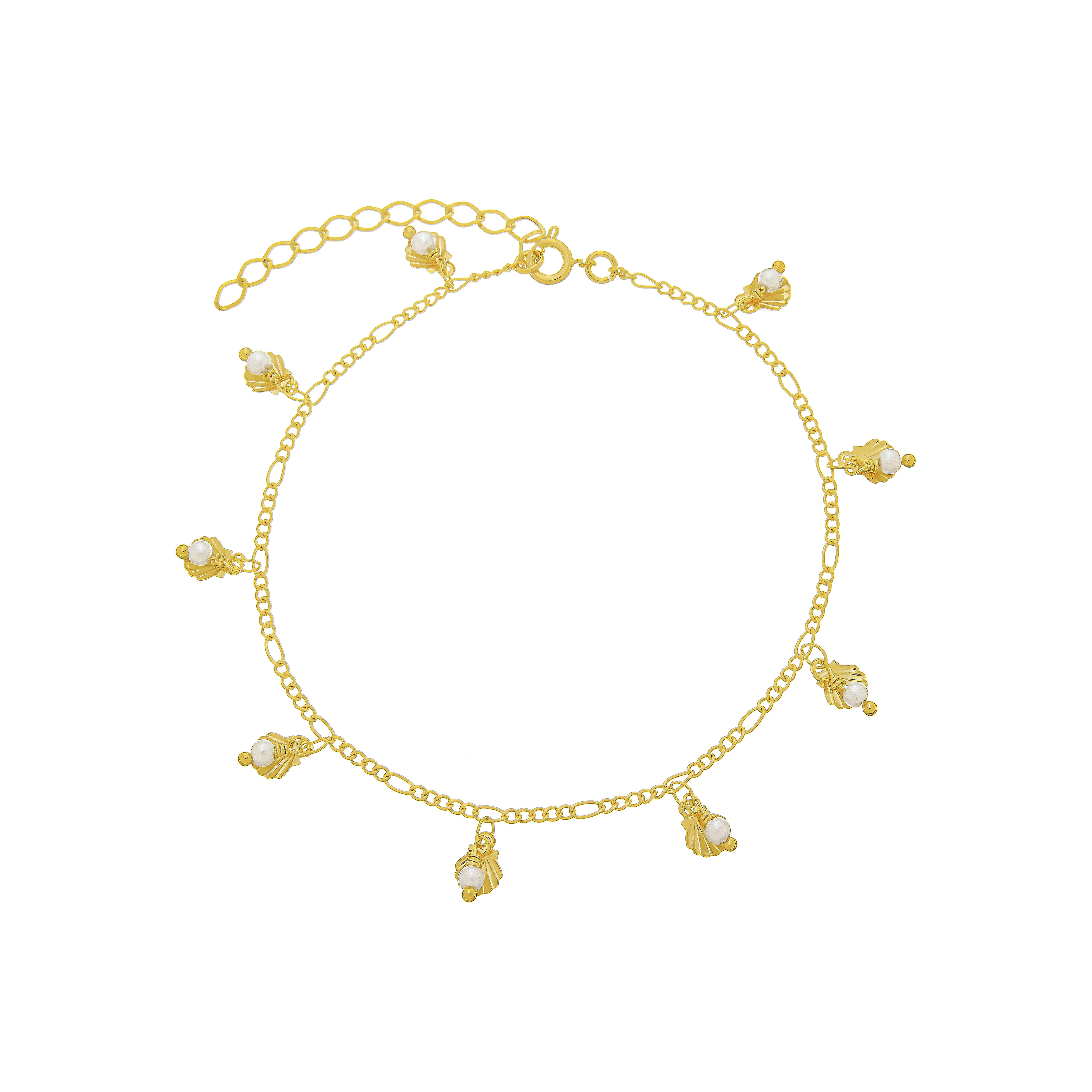- Tornozeleira com pingentes de mini conchas e pequenas pérolas;