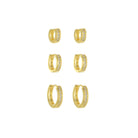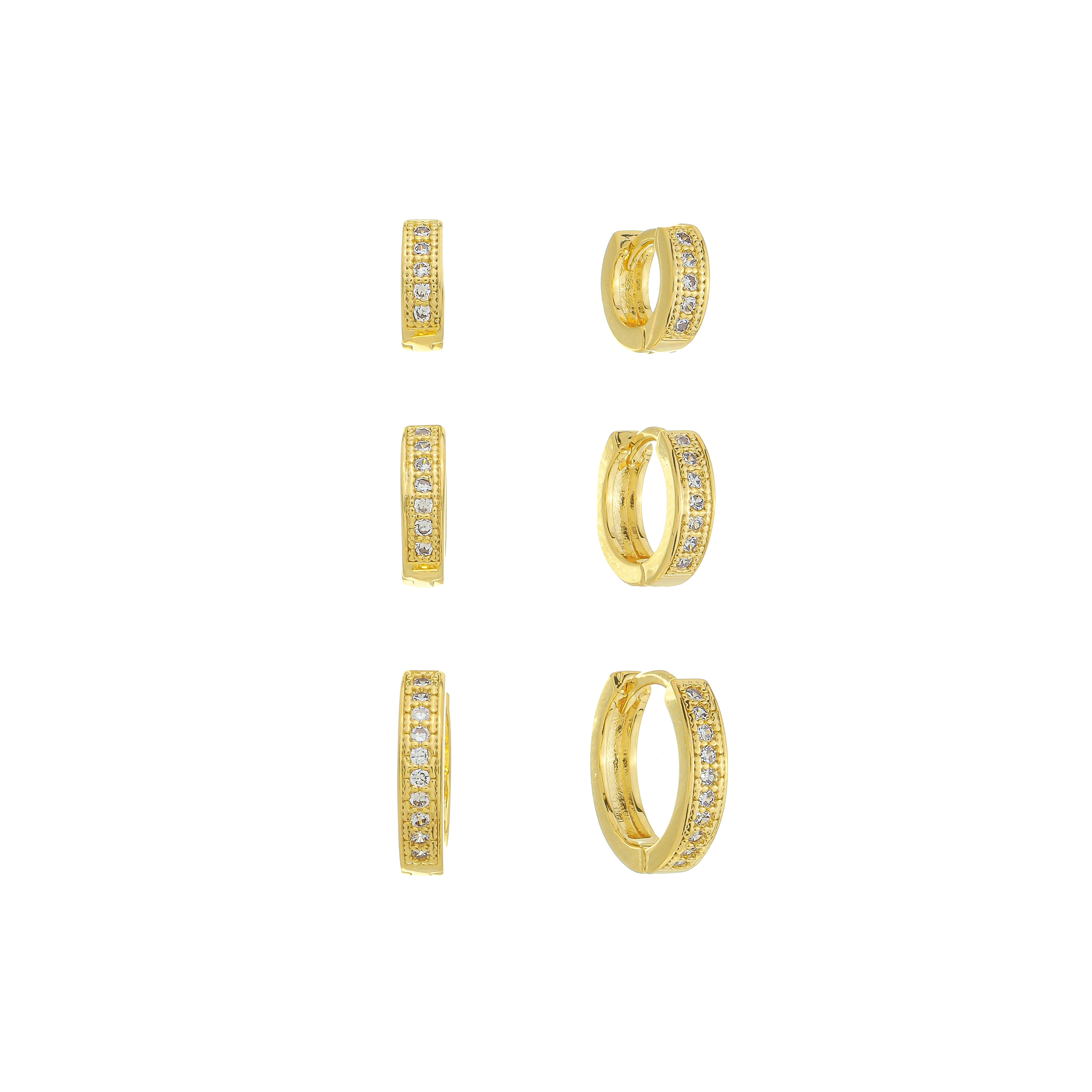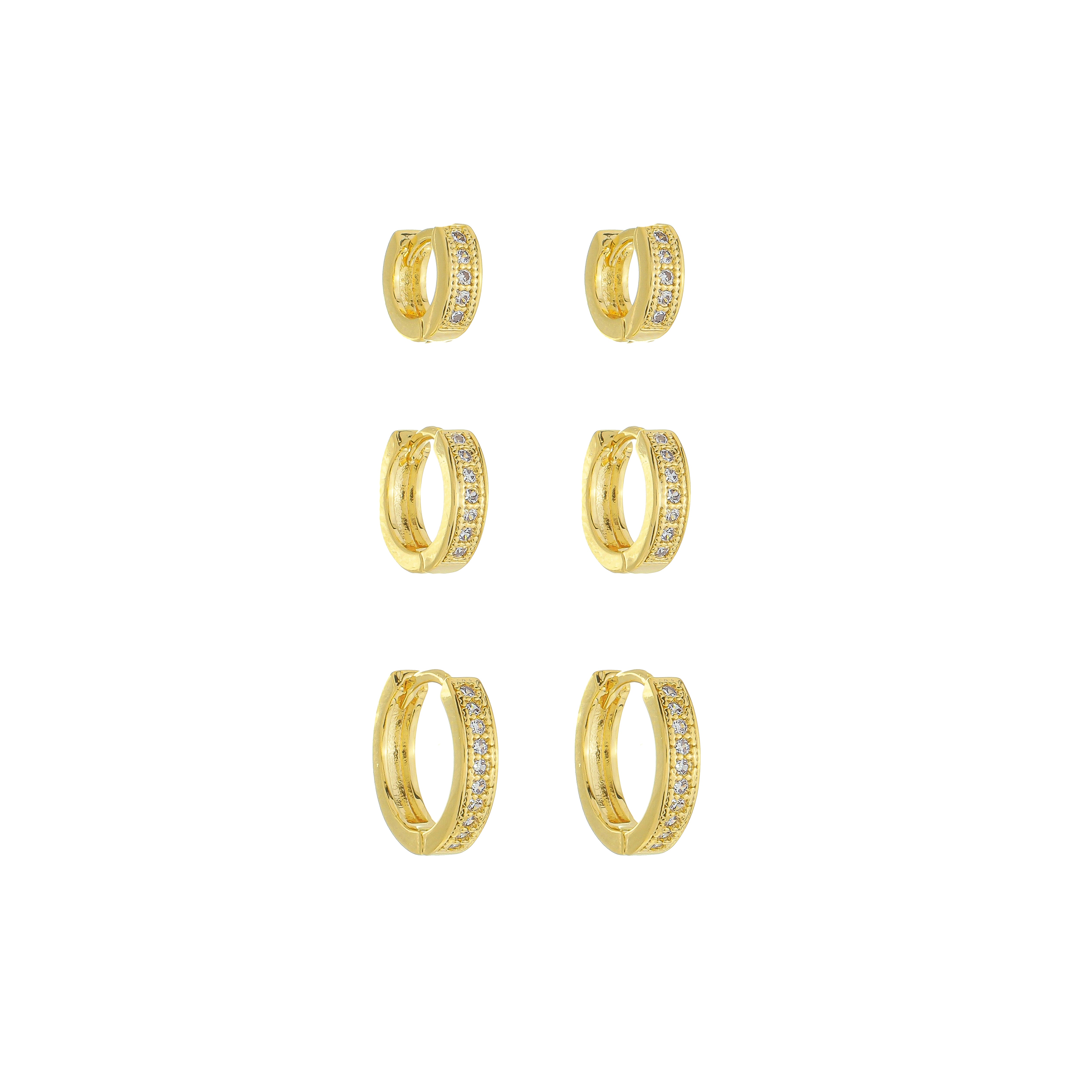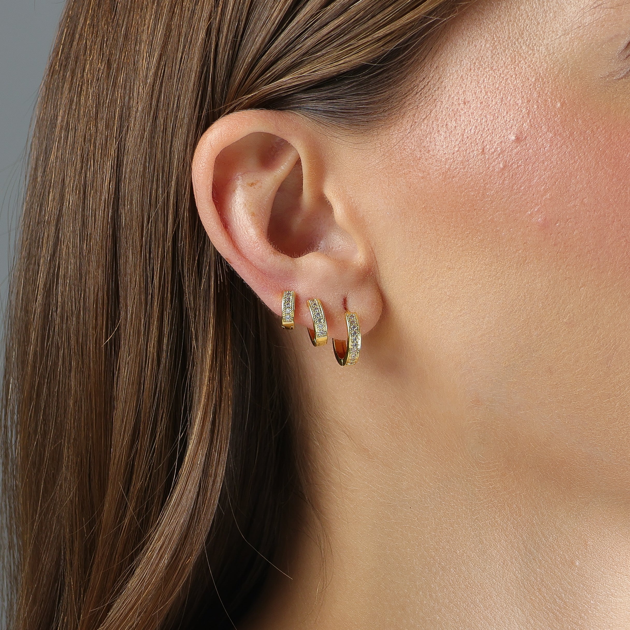 Elegantes e versáteis, as argolas do trio Gigi combinam brilho e proporção em um design moderno. Com três tamanhos diferentes e acabamento cravejado, são ideais para criar composições sofisticadas em orelhas com múltiplos furos — do look casual ao mais elaborado.