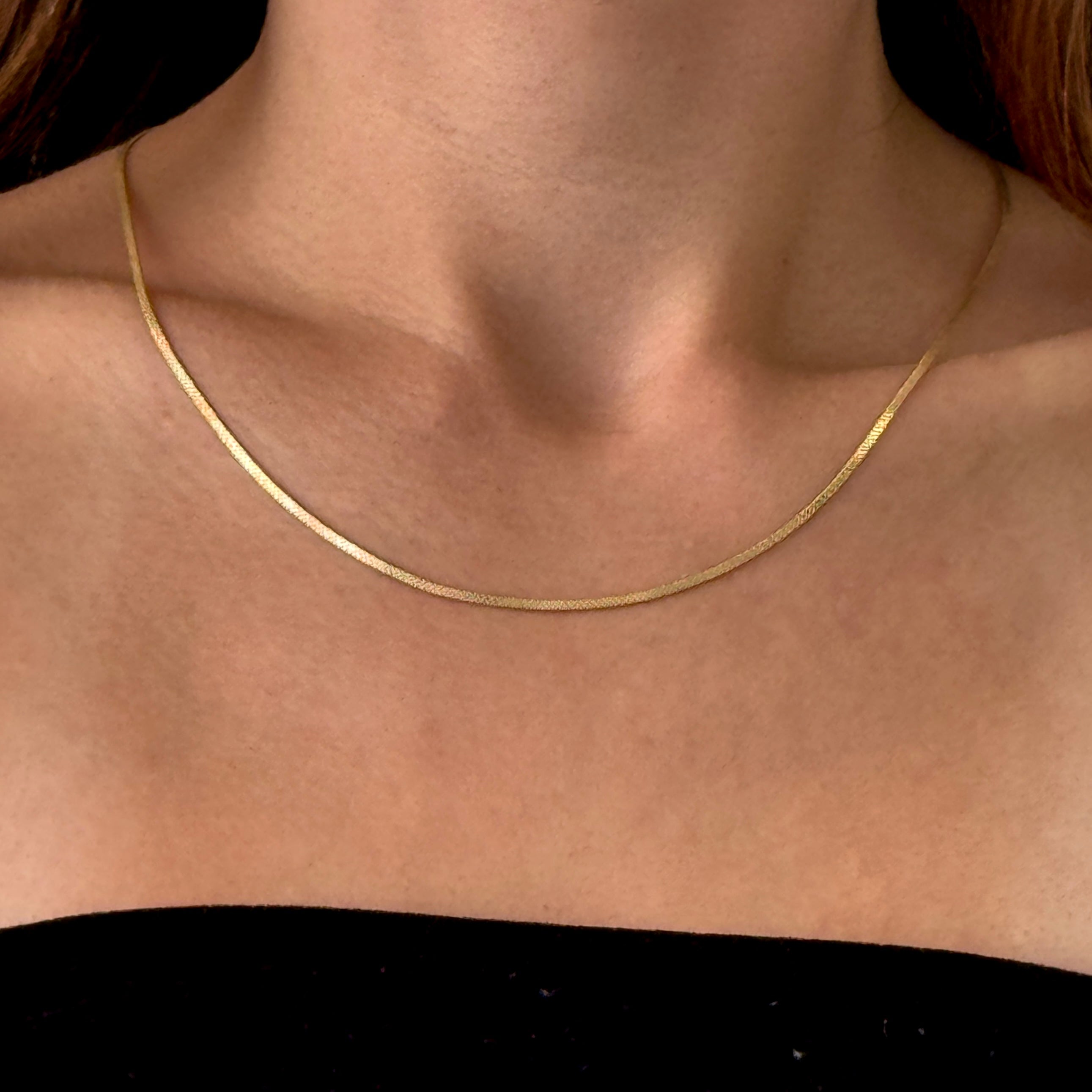 Colar banhado a ouro com design clássico e textura sutil que confere um brilho sofisticado. Uma peça versátil e elegante, ideal para ser usada sozinha, criando um visual minimalista, ou em composições modernas com outros acessórios. Um clássico indispensável no seu porta-joias.