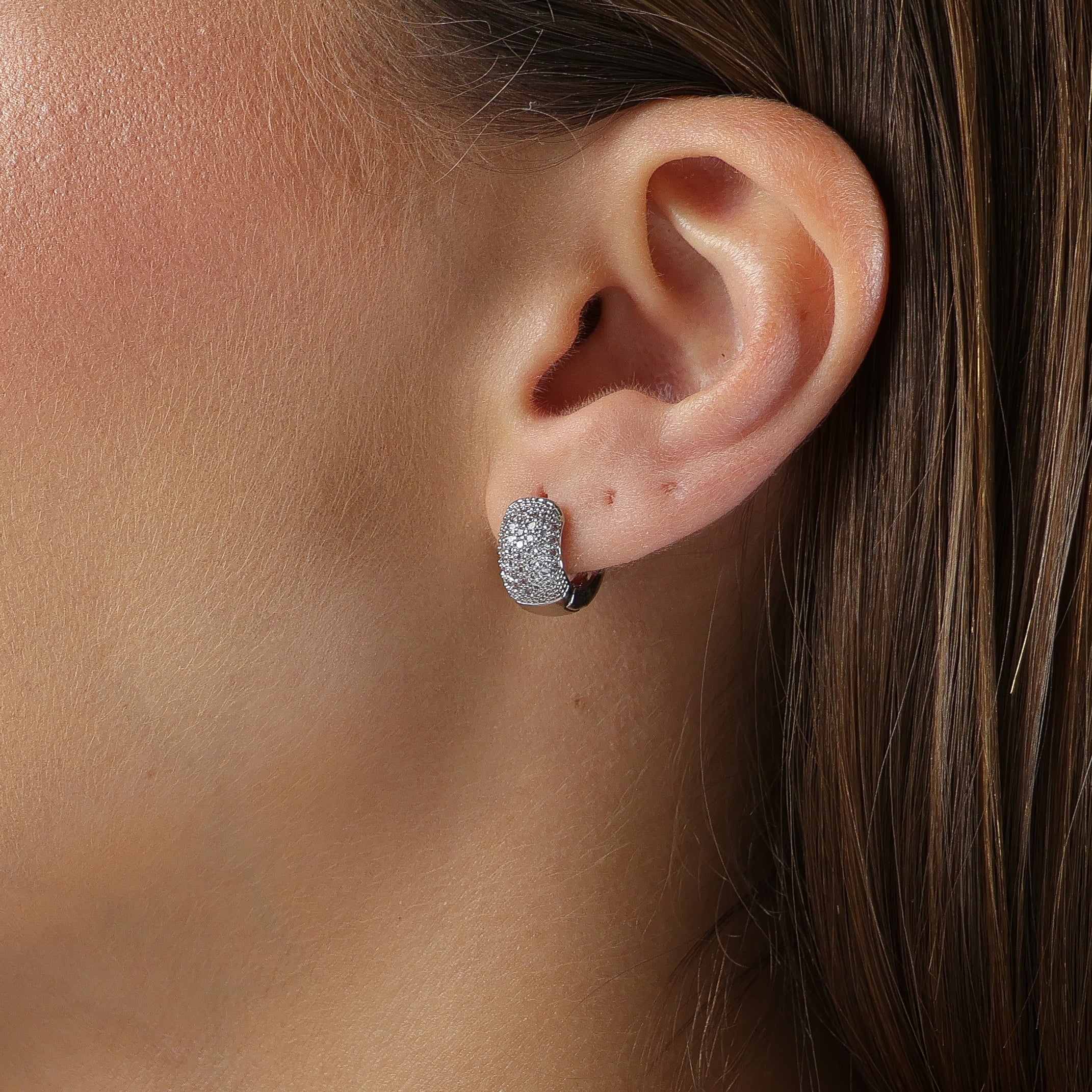 - Brinco tipo mini argola com cravação pavê de zircônias;