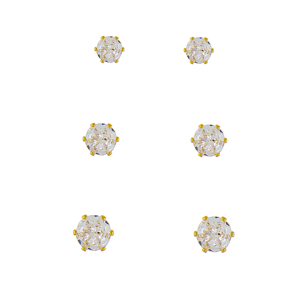 • Trio de brincos modelo ponto de luz com tamanhos crescentes;