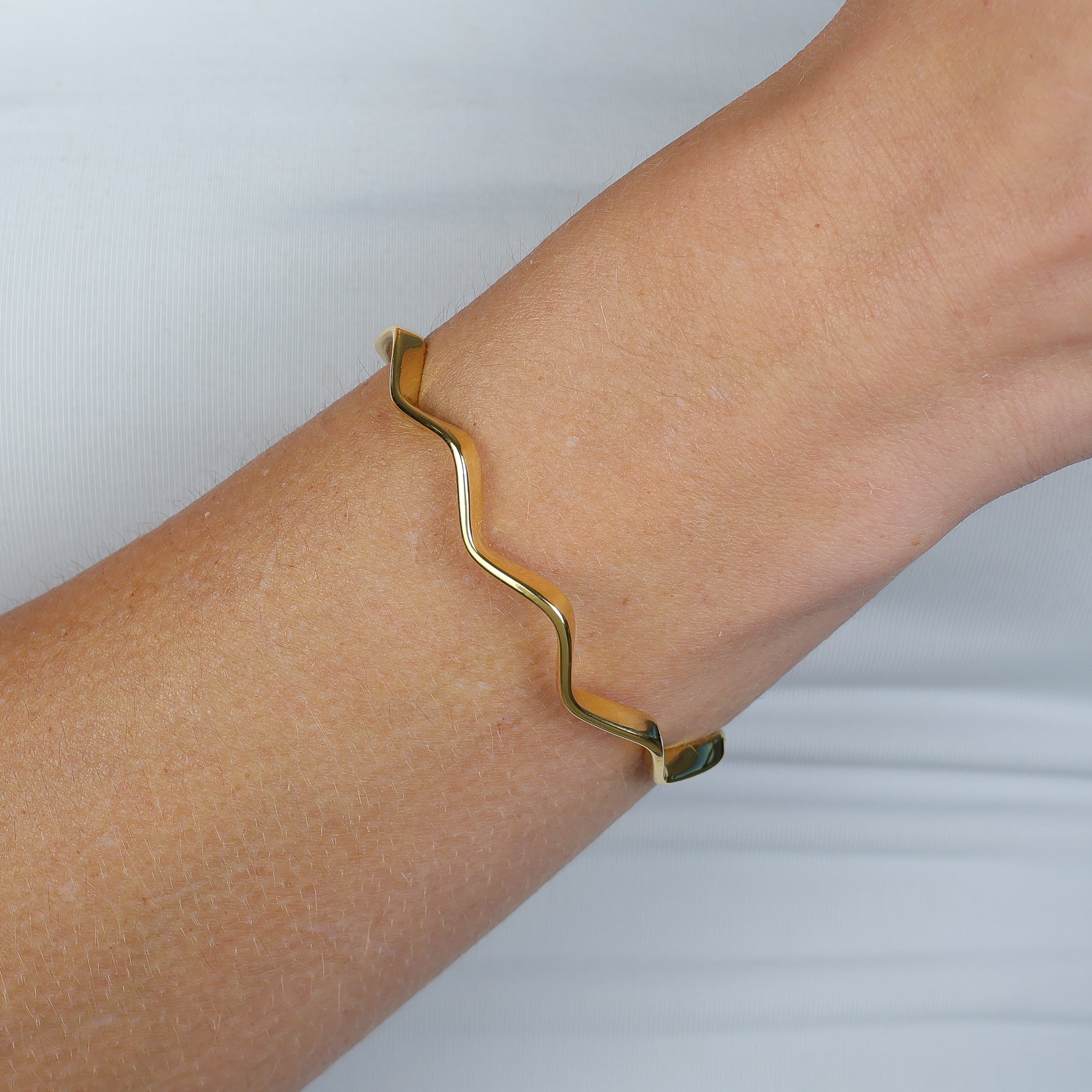 Com linhas assimétricas e traços esculturais, o bracelete Artemis é uma peça de presença sutil e sofisticada. Seu design fluido, com ângulos marcantes e acabamento polido, envolve o pulso com elegância moderna — ideal para composições que exploram estilo, originalidade e um toque de ousadia refinada.