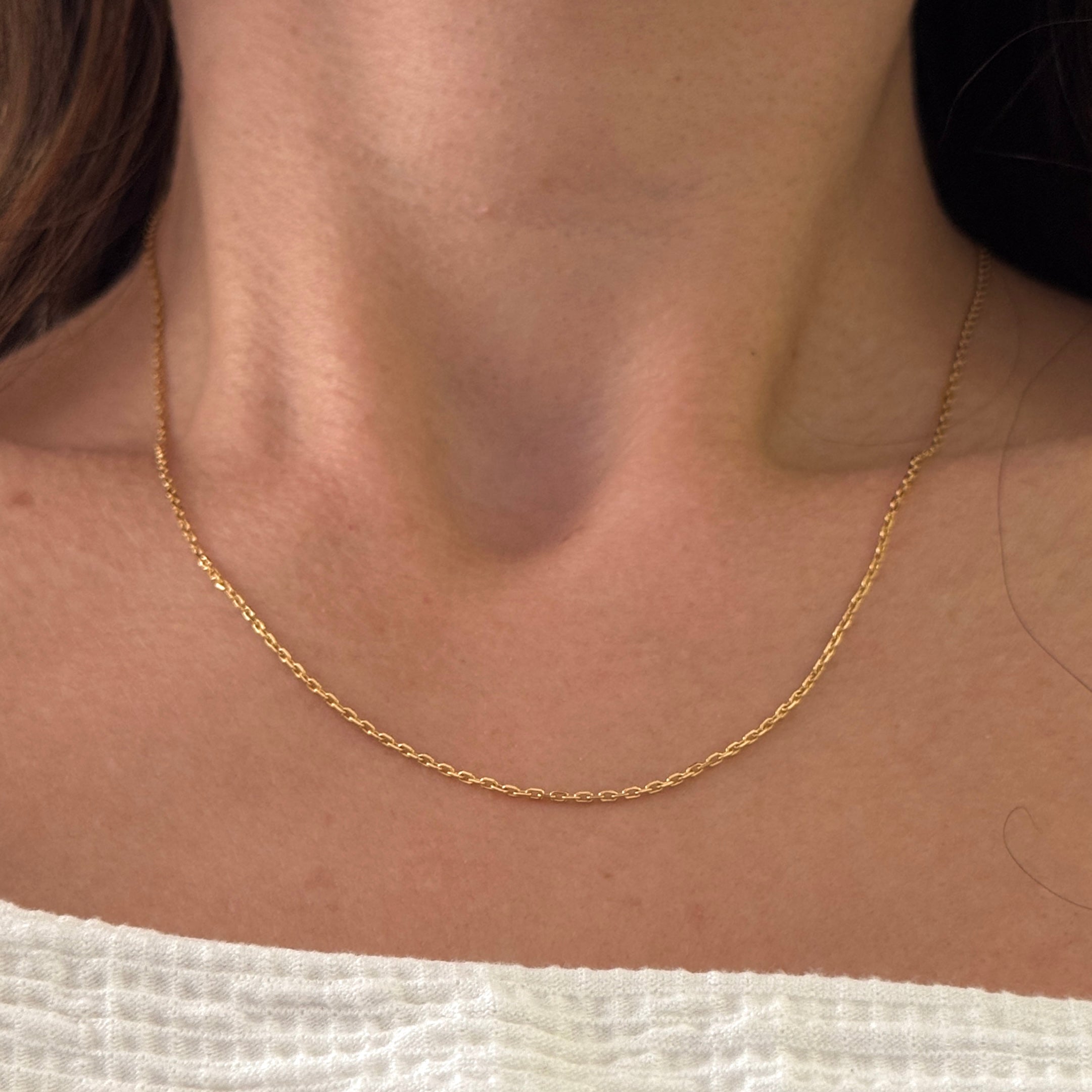 Corrente com elos delicados e acabamento minimalista, perfeito para quem aprecia a elegância nos detalhes. Uma peça versátil que pode ser usada sozinha para um visual clean ou combinada com outros colares para um look moderno e sofisticado. Ideal para complementar qualquer estilo com leveza e charme.