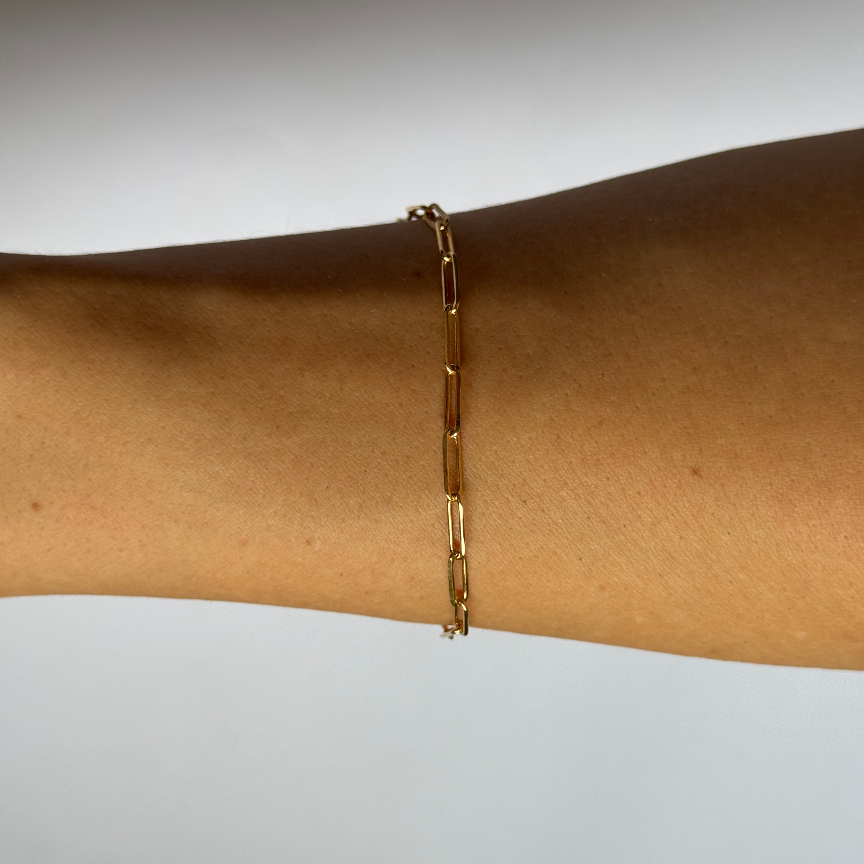 Karina é uma pulseira banhada a ouro com elos finos no estilo corrente, combinando leveza e sofisticação em um design moderno. Uma peça versátil e delicada, ideal para usar sozinha em um visual minimalista ou em combinações com outras pulseiras para um toque mais ousado. Perfeita para todas as ocasiões, do dia a dia a momentos especiais.