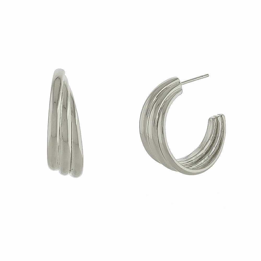 Com curvas marcantes e brilho radiante, o brinco Julieta é a escolha certa para quem ama peças elegantes com um toque moderno. Seu design em três arcos cria um efeito de volume sofisticado, destacando o rosto com delicadeza e presença.